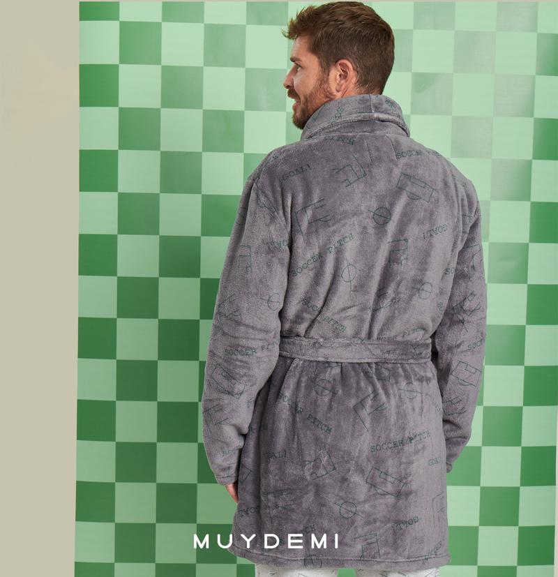 Soy una bata de hombre con cuello smoking y me ato a la cintura. Tengo bolsillos laterales para mayor practicidad. Soy la bata perfecta para ir a juego con los niños.