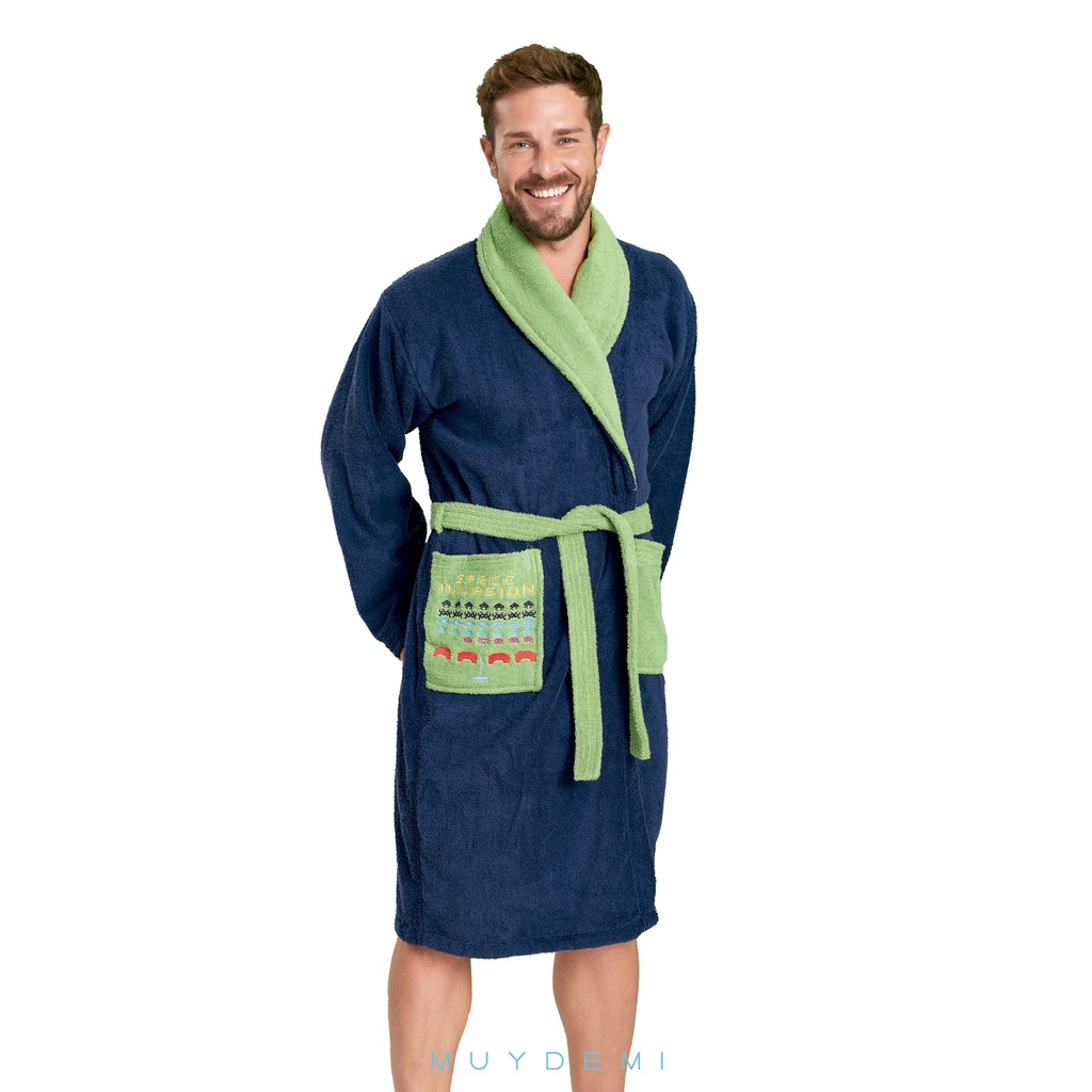 Para los amantes de “Space Invasion” me han diseñado. Soy un albornoz de la colección Minime, para que todos los niños que quieren vestir en casa como su papá, abuelo o hermano mayor puedan disfrutarme.
